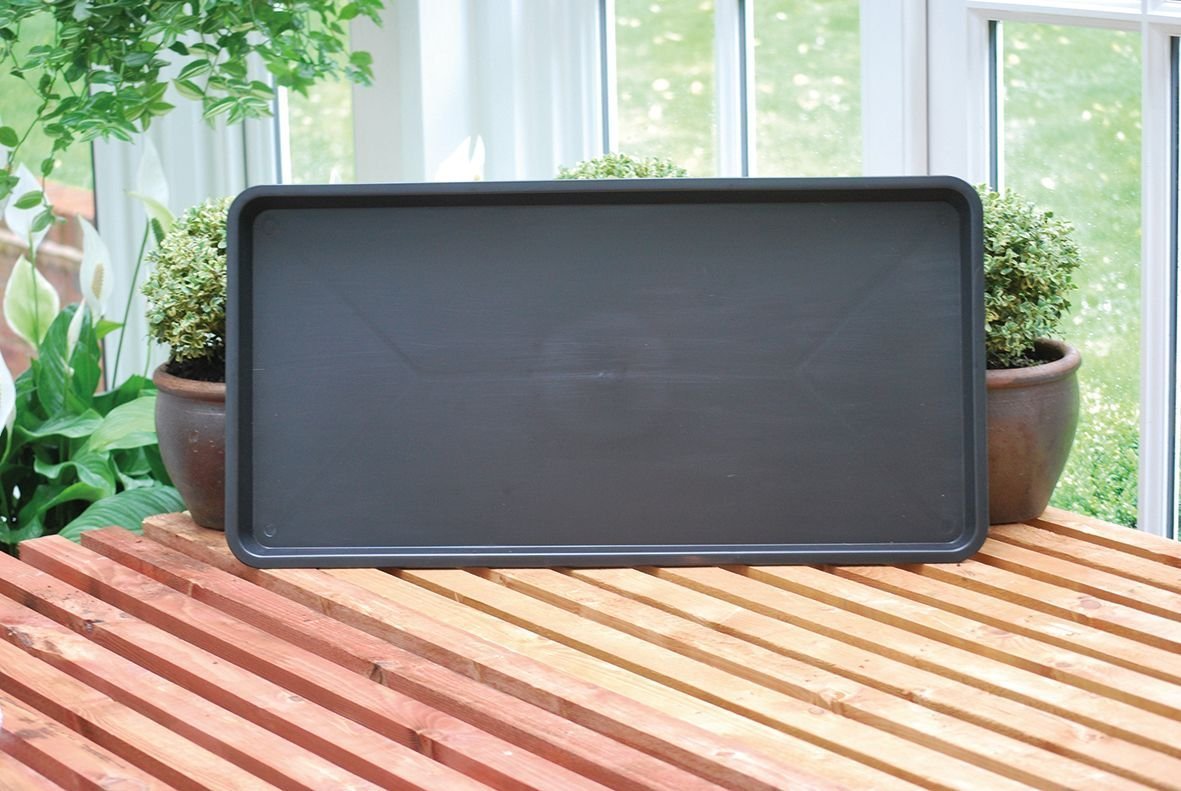Otra bandeja de nuestra gama de bandejas de jardín resistentes fabricadas por moldeo por inyección. Tiene capacidad para 3 bandejas de semillero de tamaño estándar y es ideal como bandeja de reserva de agua para múltiples macetas. Fabricada en polipropileno reciclado, es una opción duradera y sostenible. Disponible en color verde y negro económico.